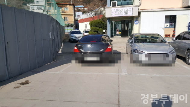 @ 골목상가 진. 출입로 와 공공주차장 까지 수협임대상가 건축부지로 허가한 울진군 좁은 골목길 마저 불법 주차한 차량으로 막혀 있다. |