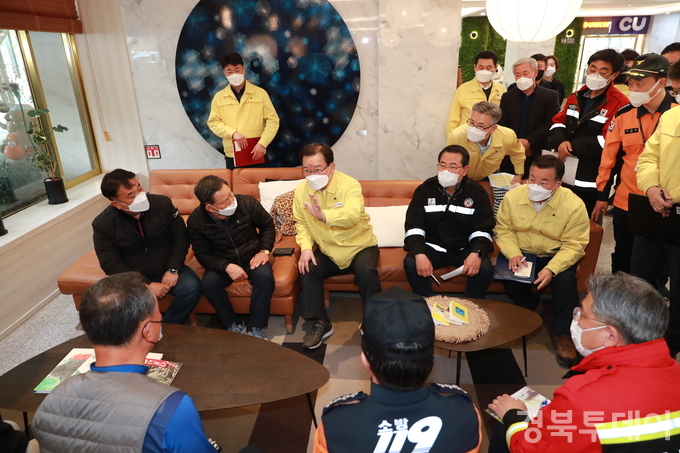 김부겸 총리는 덕구온천호텔에 마련된 이재민 임시거주시설을 찾아 이재민들을 위로하고 지원 상황과 애로사항 등을 청취했다.