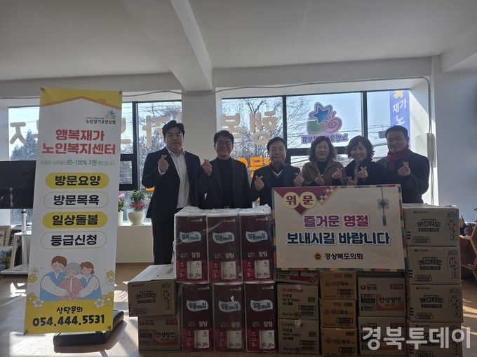 [ 경북투데이보도국 ] === 경상북도의회는 민족의 대명절인 설을 맞아 허복 도의원(국민의힘, 구미3)과 의회사무처 직원들이 2월 12일(목) 구미시에 위치한 ‘행복재가노인복지센터’를 방문해 관계자들을 격려하고 따뜻한 위문품을 전달했다. 이번 방문은 지역 사회 어르신들과 함께하는 따뜻한 명절 분위기를 조성하고, 노인 복지 현장의 목소리를 직접 듣기 위해 마련됐다.