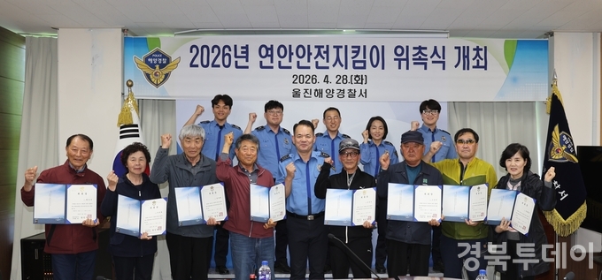 [ 경북투데이보도국 ] == 울진해양경찰서(서장 배병학)는 4월 28일 관내 연안사고 예방과 안전관리 강화를 위해 ‘2026년 연안안전지킴이 위촉식’을 개최했다고 밝혔다. 이번 위촉식에서는 울진·영덕 지역의 방파제·갯바위·해변 등 사고 위험구역을 중심으로 활동할 연안안전지킴이 8명(죽변 2명, 후포(제동·박곡) 2명, 후포항 2명, 강구 2명)을 선발해 위촉하고 현장 중심 안전관리 교육을 실시했다.