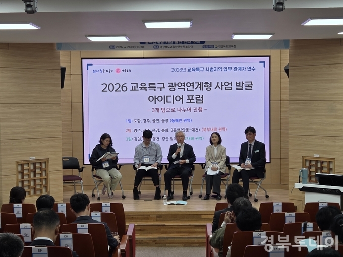 [ 경북투데이보도국 ] == 경북교육청은 4월 28일 구미 경상북도교육청연수원 소강당에서 ‘2026 교육특구 시범지역 업무 관계자 연수’를 개최하고 경북형 교육특구의 광역연계형 협력 모델 모색에 나섰다고 밝혔다. 이번 연수에는 도내 15개 교육특구 시범지역의 교육지원청과 지자체 관계자 등 80여 명이 참석해 지역별 사업 현황과 향후 연계 아이디어를 공유했다.