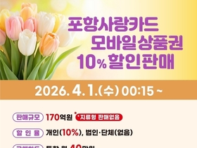 포항시, 4월 카드형·모바일 포항사랑상품권 170억 원 규모 10% 할인 판매