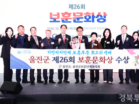 [ 경북투데이보도국 ] === 울진군은 지난 12월 15일 국가보훈부와 매경미디어 공동 주관으로 서울 서대문구 국립대한민국임시정부기념관에서 열린 ‘2025년 제26회 보훈문화상 시상식’에서 지자체 부문 ‘보훈문화상’을 수상했다. ‘보훈문화상’은 국가와 국민을 위해 희생·공헌한 분들의 나라사랑 정신과 공훈을 기리는 다양한 활동을 실시한 개인, 단체 및 지방자치단체에 수여하는 상이다. 국가보훈부는 지난 2000년부터 보후문화상을 매년 개최했으며 올해 공모와 심사를 통해 5개 팀을 선정했다. 울진군은 보훈대상자들에 대한 지속적인 예우와 지원 확대, 군민과 함께하는 다양한 보훈행사 개최로 일상 속의 보훈문화 확산에 기여한 공로 등을 인정받아 지방자치단체 부분 ‘보훈문화상’을 수상하는 영예를 안았다. 울진군은 올해 1월은 전액 군비를 부담하여 경북 도내 최고 수준으로 보훈수당을 100% 인상했다. 5월에는 국가유공자 우선주차구역 설치 및 운영 조례 제정과 주차구역을 신설하여 국가유공자들에게 생활 속 편의를 제공했다. 또한 상이군경회를 포함한 9개 보훈·향군 단체에 운영비 증액 지원, 광복회 학술회의 개최 지원, 단체별 안보유적지 견학 및 국립현충원 참배활동 지원, 보