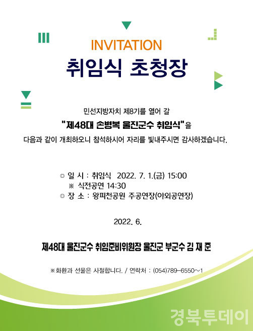 인수위원회 업무 마무리에 이어 오는 7월 1일 왕피천공원 주공연장에서 진행되는 취임식을 기점으로 손병복 당선인이 이끄는 울진군 민선 8기가 본격적으로 시작된다.