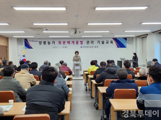 경상북도 농업기술원은 지난 19일 경북농업인회관에서 양봉농가 50여 명이 참석한 가운데 화분매개꿀벌 관리 기술교육을 실시했다.