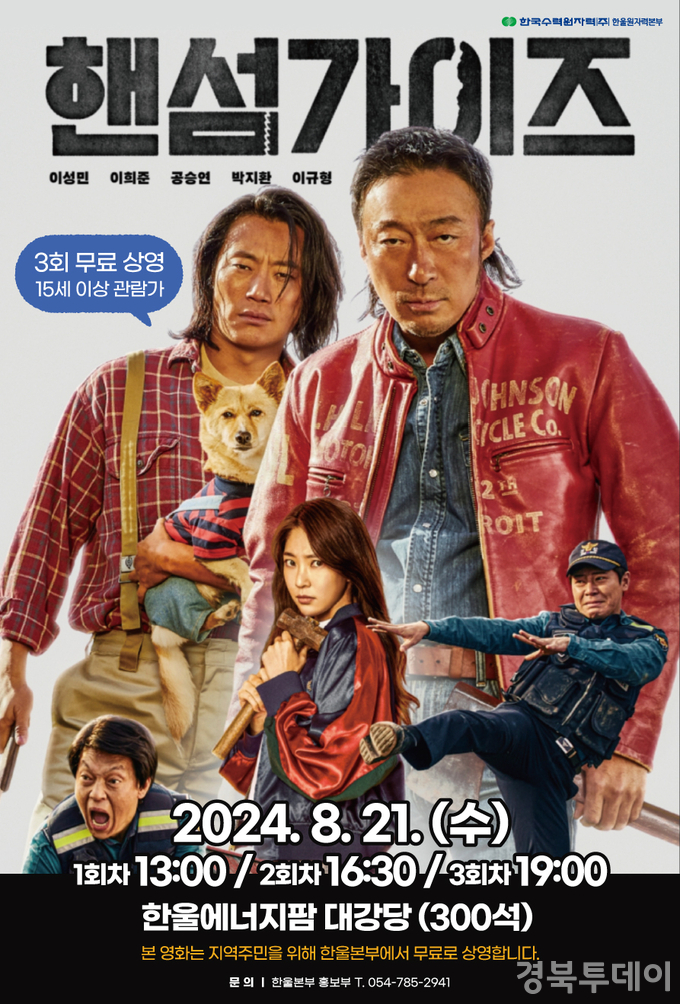 [ 경북투데이보도국 ] === 한국수력원자력(주) 한울원자력본부(본부장 이세용, 이하 한울본부)는 8월 21일 한울에너지팜 대강당에서 울진군민을 대상으로 이성민, 이희준 주연의 영화「핸섬가이즈」를 상영한다.