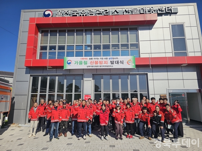 [ 경북투데이보도국 ] === 남부지방산림청 울진국유림관리소(소장 박소영)는 울진의 자랑인 금강송을 산불로부터 지키기 위해 2025. 10. 27.(월) 울진국유림관리소 청사에서 2025년 가을철 산불방지 발대식을 개최하였다.