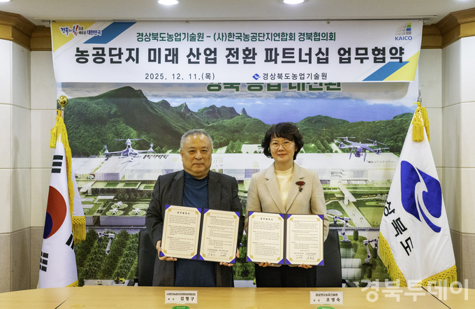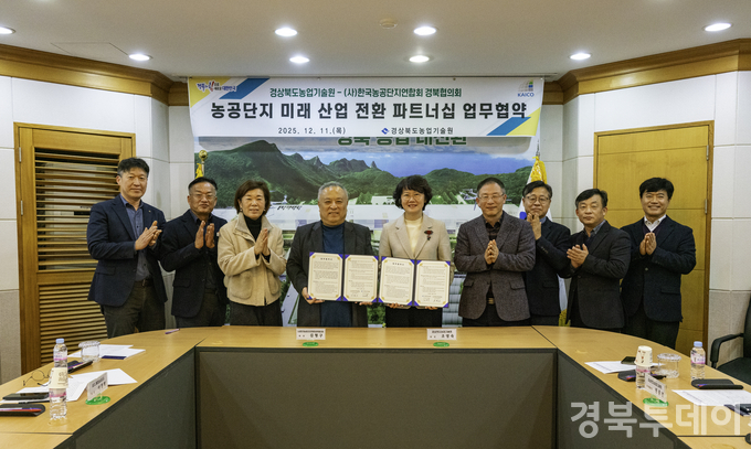 [ 경북투데이보도국 ] === 경상북도농업기술원은 11일 (사)한국농공단지연합회 경북협의회(회장 김형구)와“AI 기반 식물공장형 스마트팜 구축 및 농공단지 미래산업 전환”을 위한 업무협약을 체결했다.