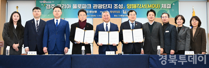 [ 경북투데이보도국 ] === 경상북도는 15일 경북도청에서 경주시, ㈜루브루와 함께 경주시 서면 일원에 3,200억 원 규모의 복합 스포츠·휴양형 관광단지를 조성하기 위한 ‘경주 코리아 폴로파크 관광단지 조성’ 업무협약(MOU)을 체결했다.