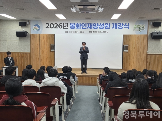 [ 경북투데이보도국 ] === 봉화인재양성원은 지난 3월 12일 봉화고등학교 시청각실에서 2026학년도 개강식을 개최하고, 지역 미래인재 육성을 위한 교육과정 운영을 본격 시작했다.