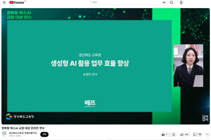 [ 경북투데이보도국 ] === 경북교육청은 18일 공식 유튜브 채널 ‘맛쿨멋쿨TV’ 생중계를 통해 도내 전 교원을 대상으로 ‘경북형 웍스 AI’ 연수를 개최했다고 밝혔다.