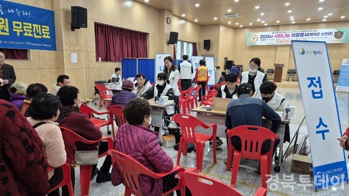 [ 경북투데이보도국 ] === 국제라이온스협회 경북지구 봉화송이라이온스클럽(회장 박병생)이 주관한 ‘사랑나눔 의료봉사’가 3월 18일 소천면 커뮤니티센터에서 성황리에 열렸다. 이날 행사에는 안동의료원을 비롯해 국제라이온스협회 경북지구, 봉화송이라이온스클럽, 경상북도 자원봉사센터, 경상북도 장애인종합복지관, 한국교통안전공단 대구북부지사, 봉화군미용협회, 봉화군자원봉사센터 등 8개 기관·단체가 참여해 의료와 복지를 아우르는 종합 봉사활동을 펼쳤다.