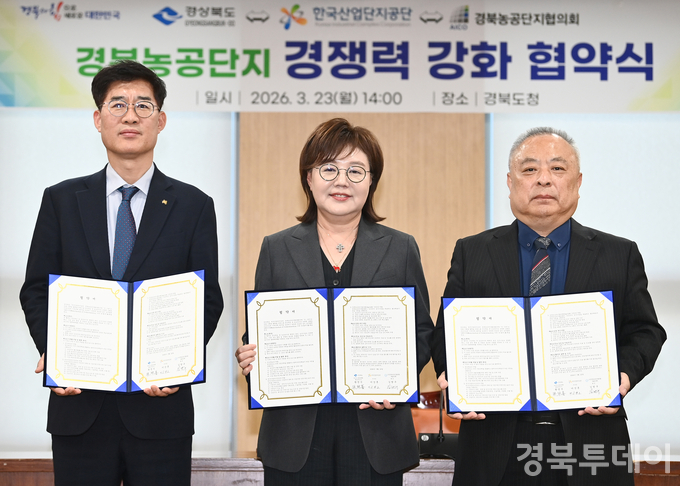 [ 경북투데이보도국 ] === 경상북도는 3월 23일 양금희 경북도 경제부지사, 김병오 한국산업단지공단 기업성장본부장, 김형구 경북농공단지협의회장 등이 참석한 가운데 도내 농공단지 경쟁력 강화와 산업구조 전환을 위한 3자 업무협약(MOU)을 체결했다고 밝혔다. 이번 협약은 단순한 시설 개선을 넘어 농공단지를 ‘공장형 식물공장(완전밀폐형 수직농장)’ 기반의 미래형 생산기지로 전환하는 것을 목표로 한다.