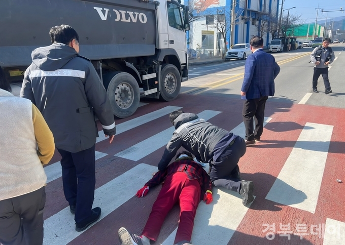 [ 경북투데이보도국 ] === 울진해양경찰서에 따르면 지난 19일 오전 10시경 후포파출소 앞 횡단보도에서 70대 여성이 갑자기 쓰러지는 사고가 발생했다. 당시 현장에 있던 후포파출소 박재우 경장과 김예린 순경은 즉시 달려가 기도 확보 등 응급처치를 실시하고 119에 신고했으며, 주변 차량을 통제해 안전을 확보한 뒤 구급대에 인계했다. 여성은 병원으로 이송된 뒤 의식을 회복했으며 현재 건강을 회복 중이다.