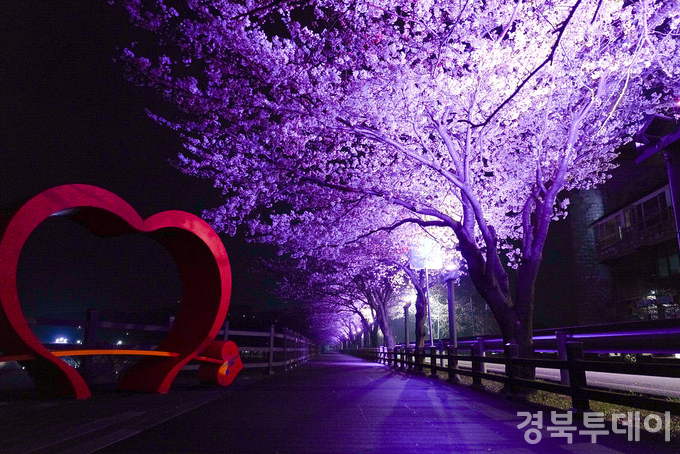 [ 경북투데이보도국 ] === 따뜻한 봄기운이 완연한 2026년 4월, 울진군 전역이 벚꽃으로 물들며 나들이객을 맞을 준비를 마쳤다. 근남면 성류굴로 향하는 길과 망양정 방면 보행자 데크길에는 벚꽃 터널이 형성되어 걷는 이들에게 봄의 정취를 한껏 선사한다. 데크를 따라 흐드러지게 핀 벚꽃은 산책과 드라이브를 동시에 즐기기 좋은 풍경을 연출한다. 특히 야간에는 형형색색의 조명이 벚꽃을 은은하게 비추어 낮과는 또 다른 낭만적인 분위기를 자아낸다.