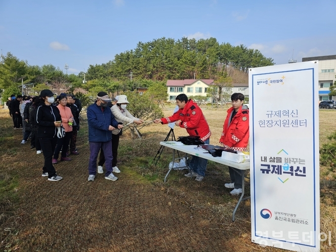 [ 경북투데이보도국 ] === 남부지방산림청 울진국유림관리소는 2026년 4월 1일 식목일 기념 ‘내 나무 갖기 캠페인’ 행사 참가자를 대상으로 국민 불편 해소와 임업인 지원을 위한 ‘산림 분야 규제혁신 현장지원센터’를 운영했다고 밝혔다. 현장지원센터는 산림 현장의 애로사항을 청취하고 2025년 추진된 산림 규제혁신 대표사례를 소개하는 자리로 마련됐다.
