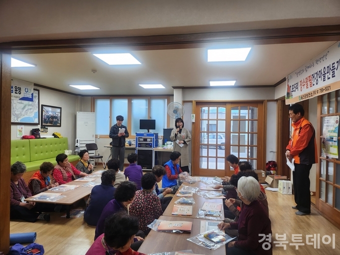 [ 경북투데이보도국 ] === 울진군은 후포면 건강마을 조성사업의 일환으로 4월 9일부터 6월 11일까지 총 10회에 걸쳐 ‘건강마을 마음학교 기행문사업’을 운영한다고 밝혔다. 이번 사업은 후포5리 주민 20명을 대상으로 진행되며, 고령층의 치매 예방과 인지 건강 증진을 목표로 다양한 인지자극 프로그램을 제공한다.