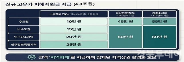 특히, 이번 정부 추경에서 소득 하위 70% 국민 약 3,580만명에게 1인당 10만~60만 원의‘고유가 피해지원금’을 지역화폐로 지급하기로 결정함에 따라 도민 생활 안정은 물론, 소비 활성화를 통한 지역경제 회복에도 크게 기여할 것으로 기대된다.