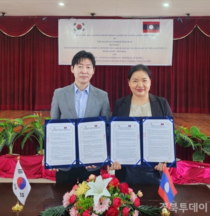 [ 경북투데이보도국 ] == 포항시는 4월 21일(현지시간) 라오스 비엔티안에서 라오스 노동사회복지부와 ‘외국인 계절근로자 도입을 위한 업무협약(MOU)’을 체결했다고 밝혔다. 이번 협약은 법무부의 추천범위 축소로 기존 다문화 친인척 방식의 인력 확보에 제약이 생긴 가운데 수산물 가공업 인력난을 해소하기 위한 대응책이다.