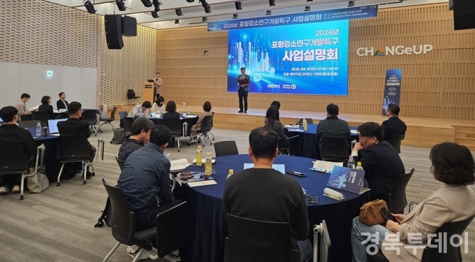 [ 경북투데이보도국 ] == 포항강소특구육성센터는 4월 21일 포항 체인지업그라운드에서 지역 중소·벤처기업과 유관기관 관계자 100여 명이 참석한 가운데 ‘2026년 포항 강소연구개발특구 사업설명회’를 개최했다고 밝혔다. 이번 설명회는 포항강소특구 2단계(2025~2029년) 사업이 본격화되는 시점에 맞춰 2026년도 주요 지원사업과 추진 방향을 공유하기 위해 마련됐다.