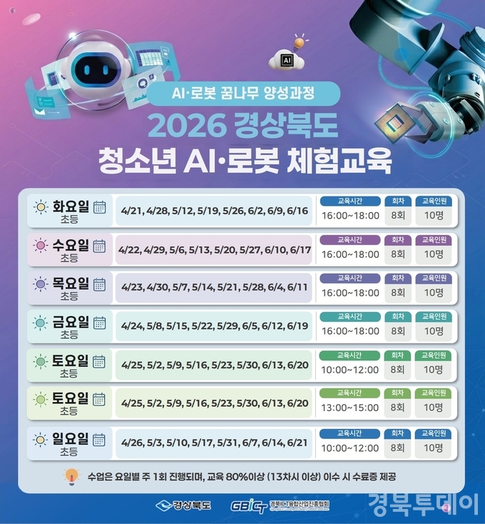 현장 반응도 뜨겁다. 21일 개강한 1기 모집에서 토요일 오전반은 10명 정원에 32명이 지원해 3.2대 1의 경쟁률을 보였고, 경북도는 오프라인 거점 교육(상시 10개반, 총 100명)과 함께 약 800명을 수용할 수 있는 대규모 온라인 교육도 준비 중이다. 온라인 과정은 5월부터 실시간 Q&A가 가능한 수준별 맞춤형 콘텐츠로 북부권 각지의 학생들에게 제공될 예정이다.
