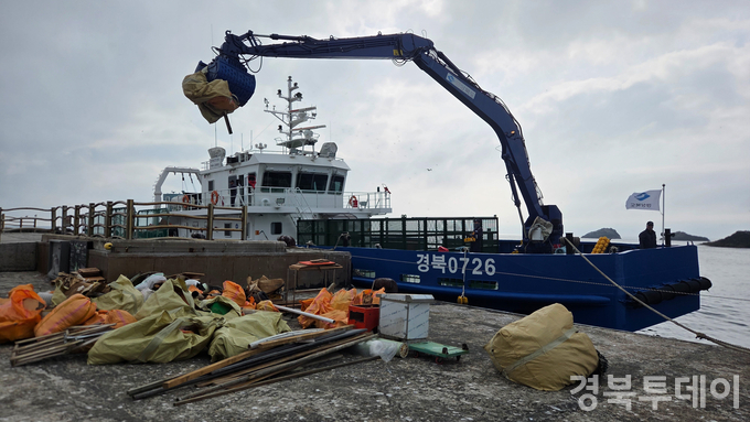 [ 경북투데이보도국 ] == 경상북도는 4월 27일 해양환경정화선 ‘경북0726호’를 독도와 울릉도 해역에 긴급 투입해 해양쓰레기 수거 작업을 실시했다고 밝혔다. 이번 투입은 독도경비대 내 일부 폐기물 방치 사실이 알려지면서 환경오염 우려가 제기된 데 따른 긴급 조치이다.