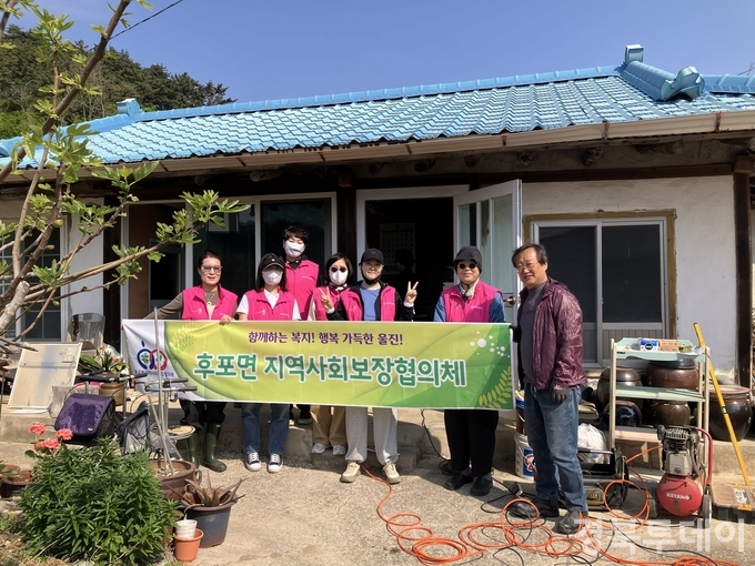 [ 경북투데이보도국 ] == 후포면 지역사회보장협의체(공동위원장 금동찬·장성호)는 지난 4월 27일 관내 취약계층의 주거환경 개선을 위한 집수리 봉사활동을 실시했다고 밝혔다. 이번 사업은 한울원자력본부의 지원으로 진행됐으며 협의체 소속 봉사단체의 재능기부와 자발적 참여로 이뤄졌다.