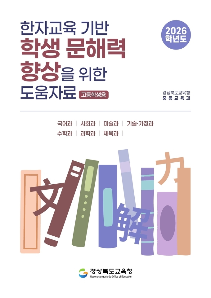 [ 경북투데이보도국 ] == 경북교육청은 학생들의 어휘 이해력과 문해력 향상을 위해 ‘한자교육 기반 학생 문해력 향상을 위한 도움 자료’를 개발해 도내 고등학교에 보급했다고 4월 29일 밝혔다. 이번 자료는 교과서 각 단원에 등장하는 한자어를 중심으로 구성해 교과 학습과 연계한 실질적 수업 지원을 목적으로 제작됐다.