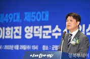 [경북투데이사회부기자 김수룡] === 영덕군의 민선 6기와 7기를 이끌었던 이희진 군수가 지난 29일 이임식을 끝으로 8년간의 영덕 군수직을 마무리했다. 영덕군청 3층 대회의실에서 열린 이임식은 직원과 지인 등이 참석해 소박하게 치워졌으며, 이임사와 직원 송별사, 현관 앞 기념촬영 등의 순으로 진행됐다. 이 군수는 이임사를 통해 “8년간 군정에 임하며 영덕군의 안녕과 발전을 위해 진심을 다했다”며, “전염병과 자연재해 등 예측할 수 없는 시련이 많았지만 동료 공직자들과 군민의 노력으로 함께 이겨낼 수 있었다”고 회상했다. 이어 이 군수는 “잘못된 관행을 바꾸고 주민참여 행정을 시작한 것에 보람을 느끼고 특히, 지방소멸의 위기 속에서 민간투자 6,000억원을 유치해 영덕군의 지속가능한 성장에 밑그림이 될 것으로 기대한다”며 직원들을 응원했다. 한편, 이희진 영덕군수는 영덕군 영덕읍 화수리 출신으로, 영덕고등학교를 졸업하고 중앙대학교 행정대학원 행정학 석사를 취득했으며, 1992년부터 영덕을 지역구로 한 국회의원 보조관으로서 고향 영덕을 위해 일해오다 지난 2014년 민선 6기 영덕군수로 취임해 민선 7기까지 수평적인 리더십을 바탕으로 군정을 이끌었다. 이 군수